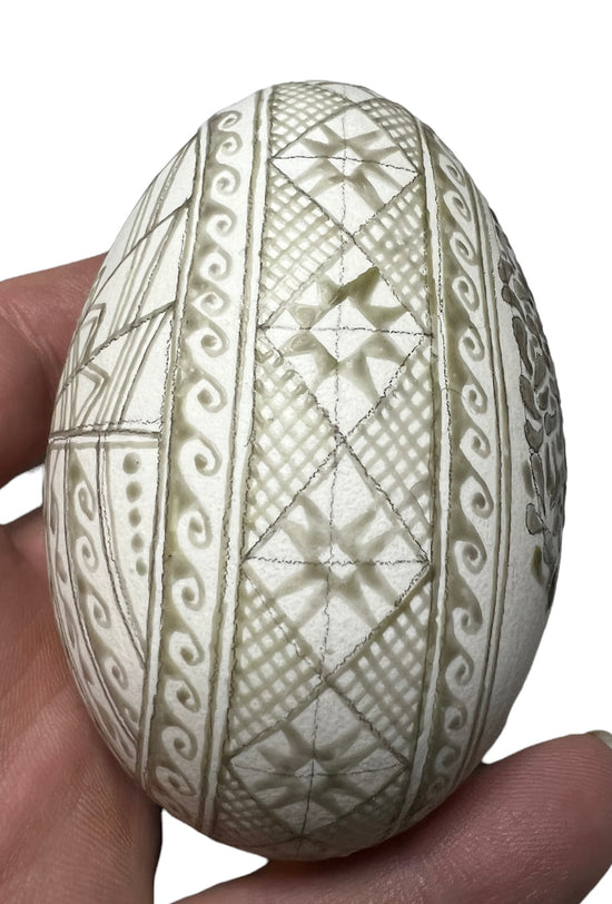 Each piece is hand made and therefore unique. Even if I am making multiples of the same design, I do everything by hand without stencils or templates and so each one can be slightly different, which is the nature of art. I use a variety of colors of chicken eggs as well as duck, turkey,goose eggs and even emu eggs.