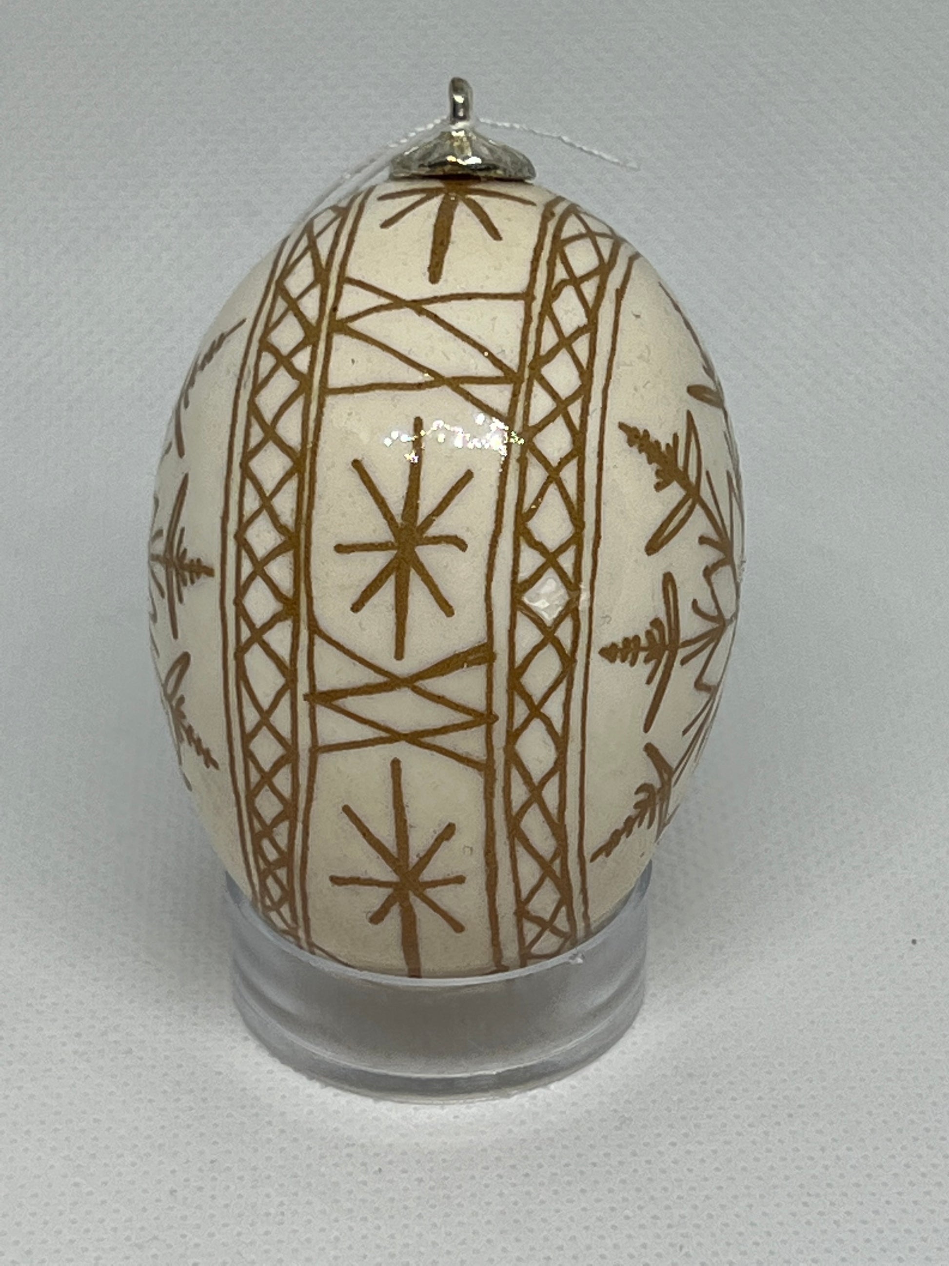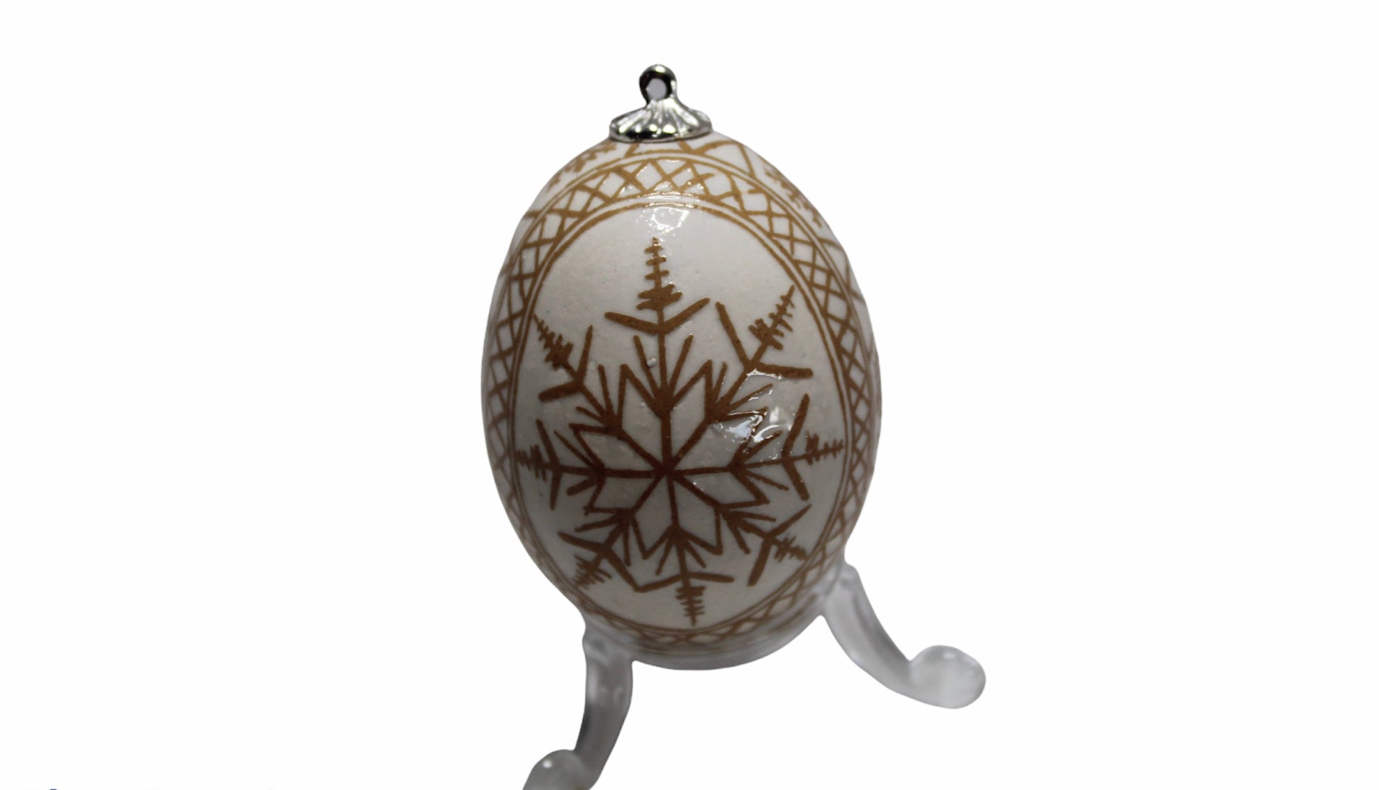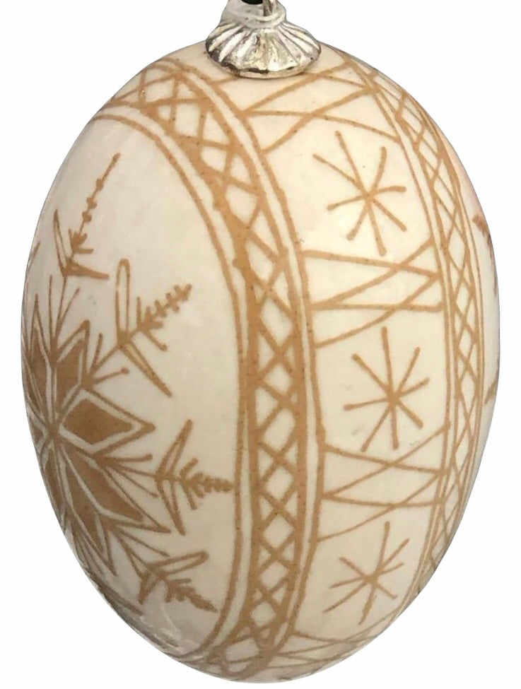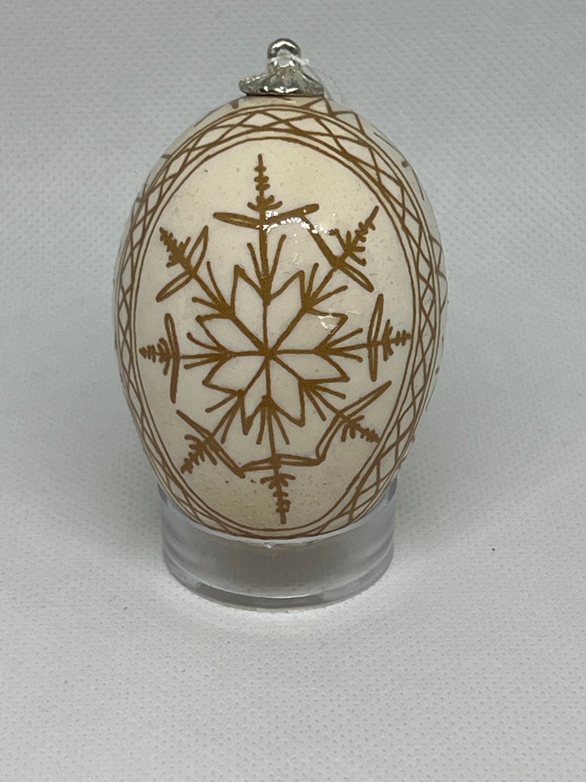 Beautiful Christmas Snowflake made from a brown chicken egg. The design is acid etched into the egg so that the natural color of the egg shines out.