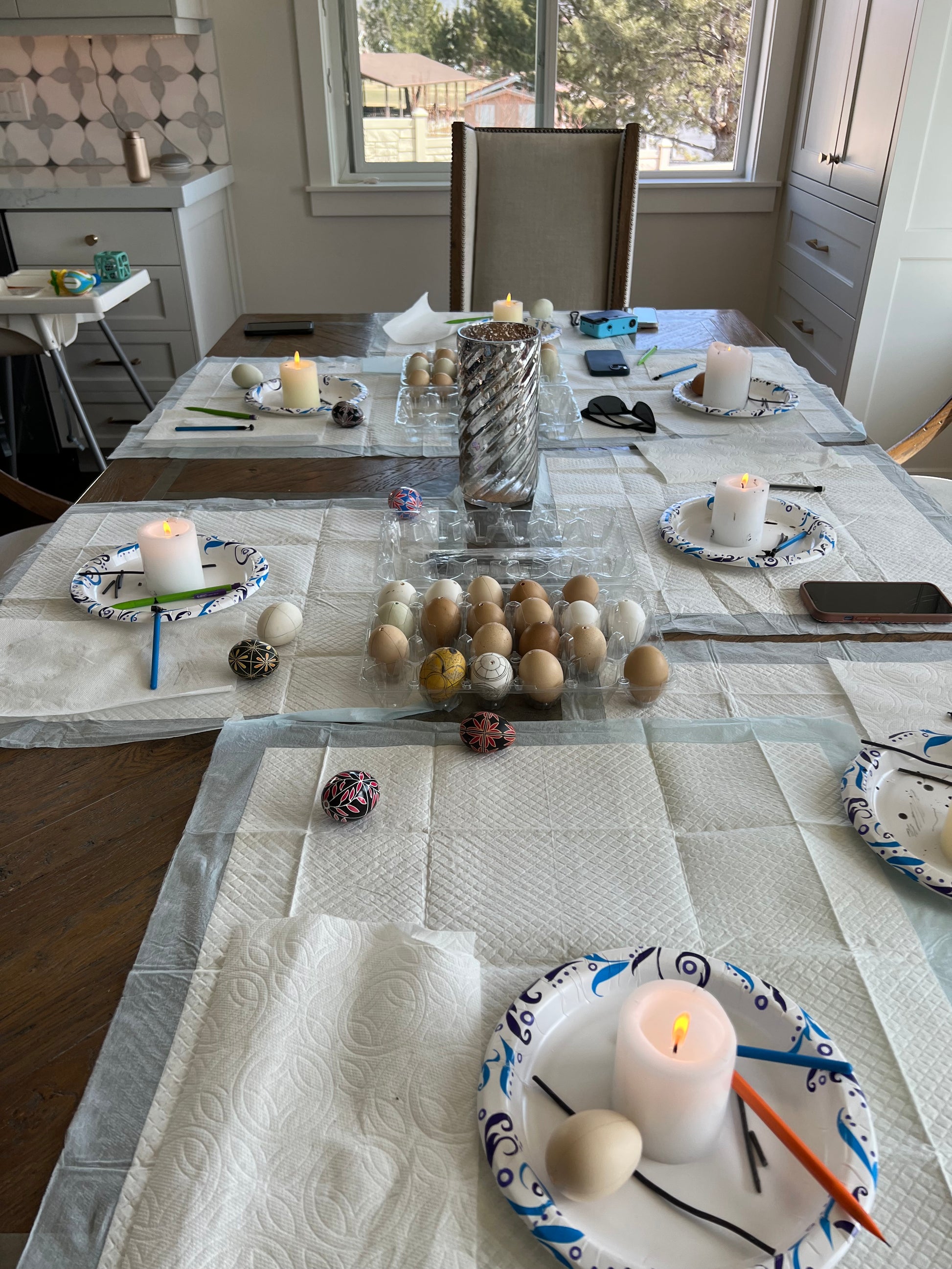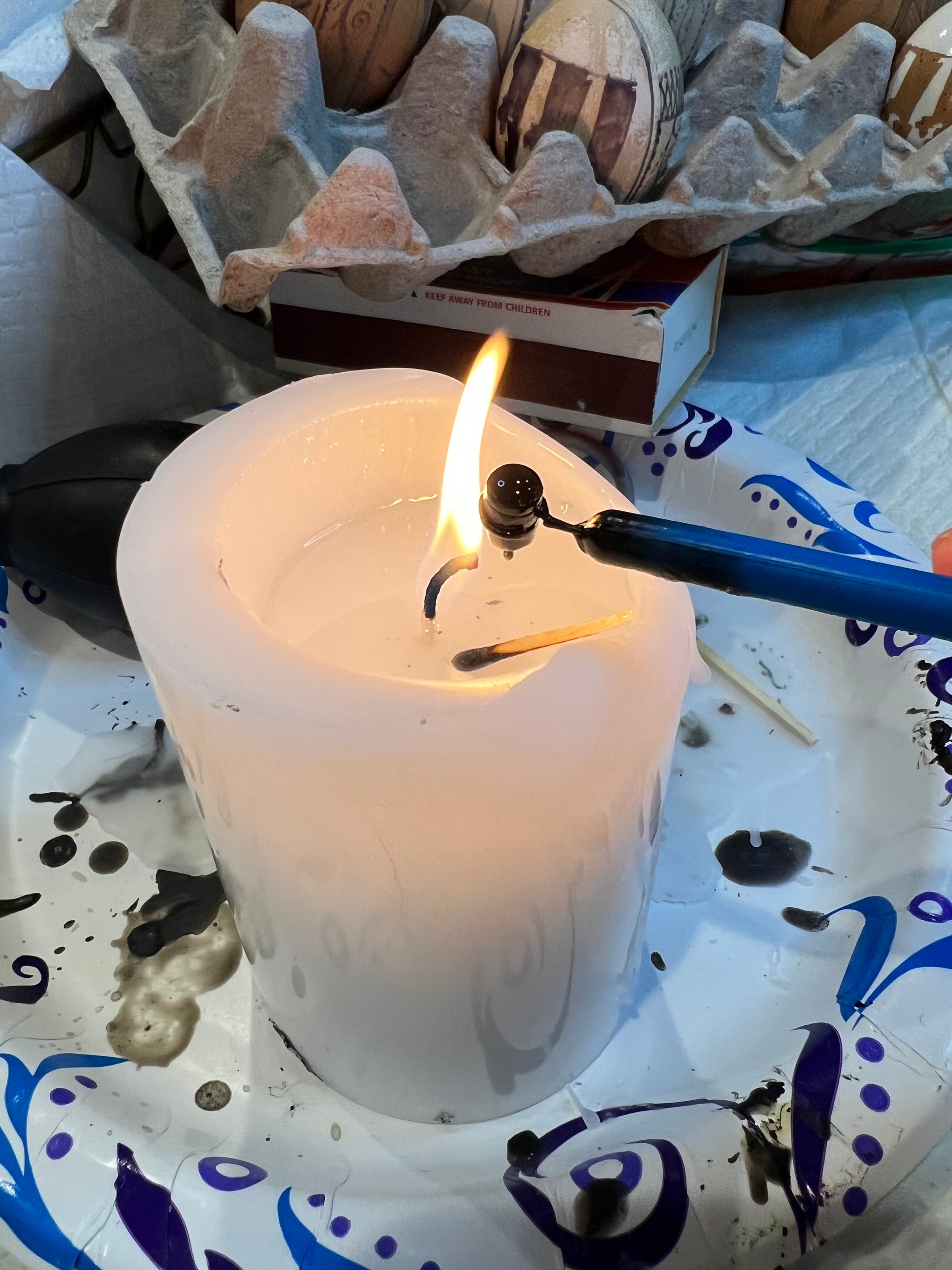 I will provide all materials for the class (kistka, wax, dyes, eggs, candles, table coverings, etc).