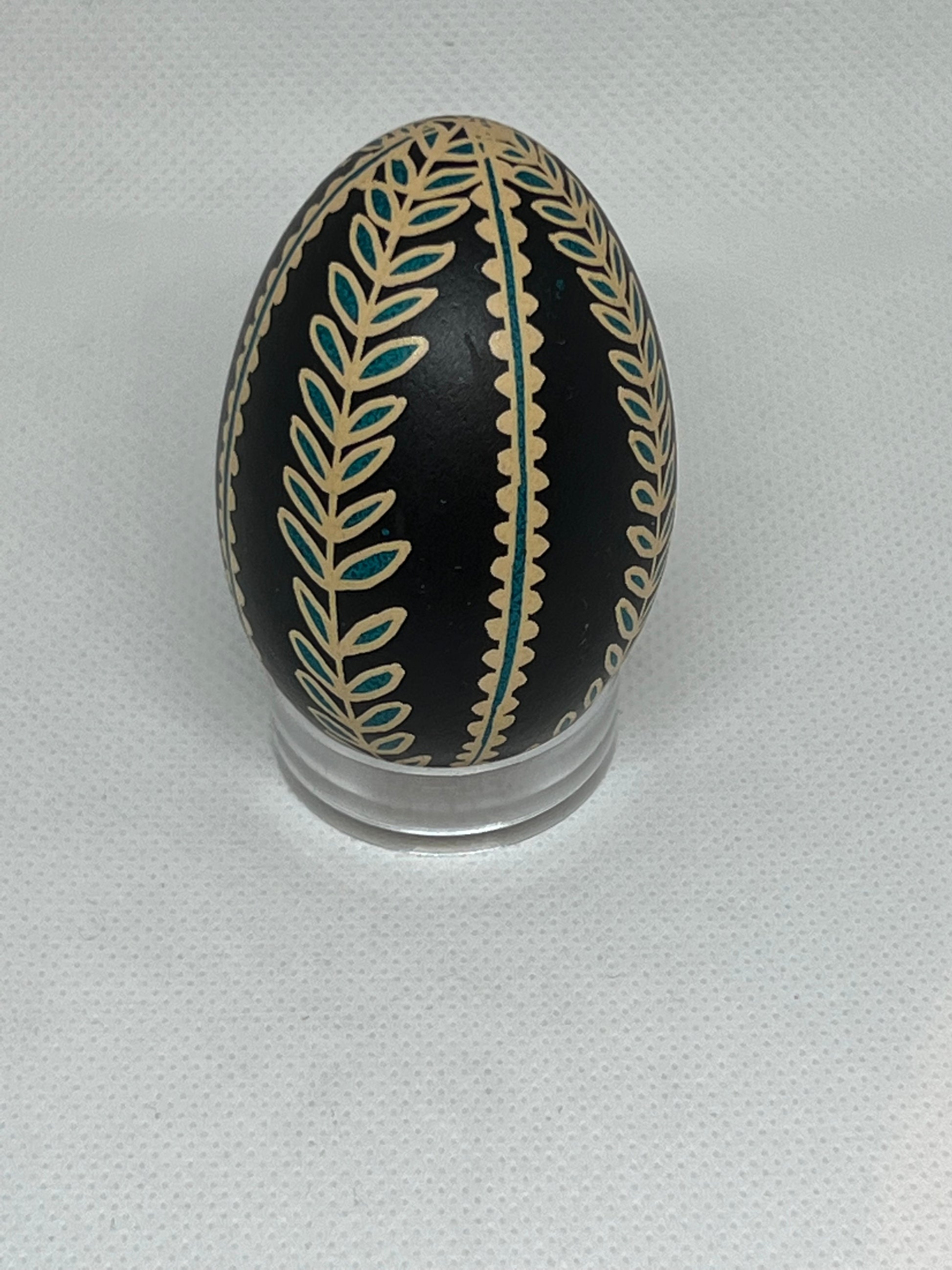 Vertical bands and leaves. Variety of options available. Background color will be black, Secondary color (of leaves, etc) can be chosen.